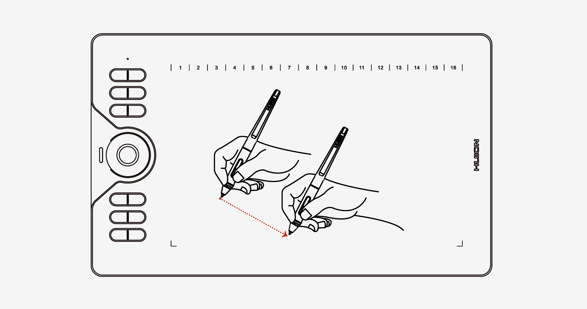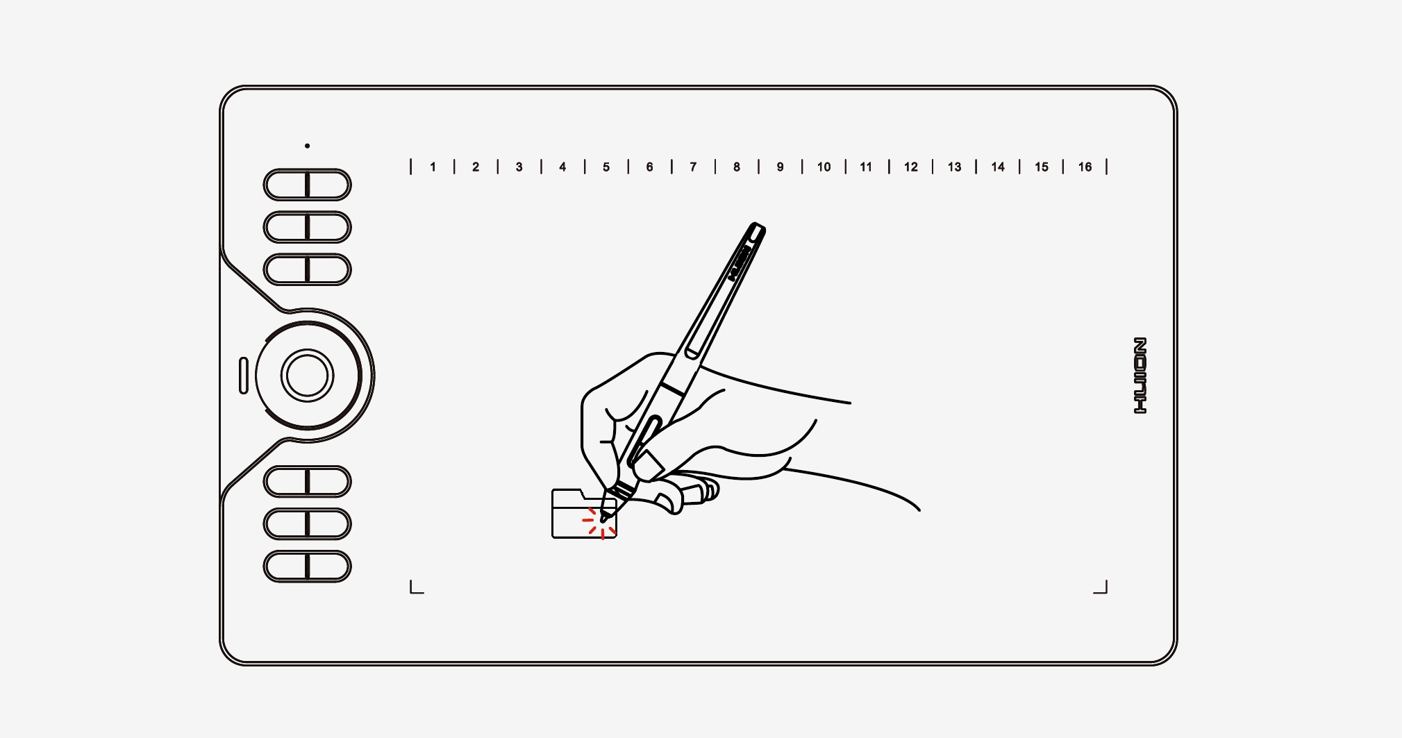 Hold the pen as you hold a normal pen or pencil. Adjust your grip so that you can toggle the side switch easily with your thumb or forefinger. Be careful not to accidentally press the switch while drawing or positioning with the pen.Note:When not in use, place the pen in the pen case or on the desk. Do not place the pen on the surface of screen, which may interfere with the use of other screen cursor positioning equipment, may also cause your computer can not enter the sleep mode.